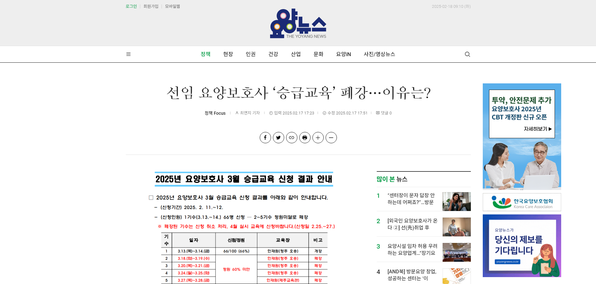 선임 요양보호사 ‘승급교육’ 폐강…이유는?