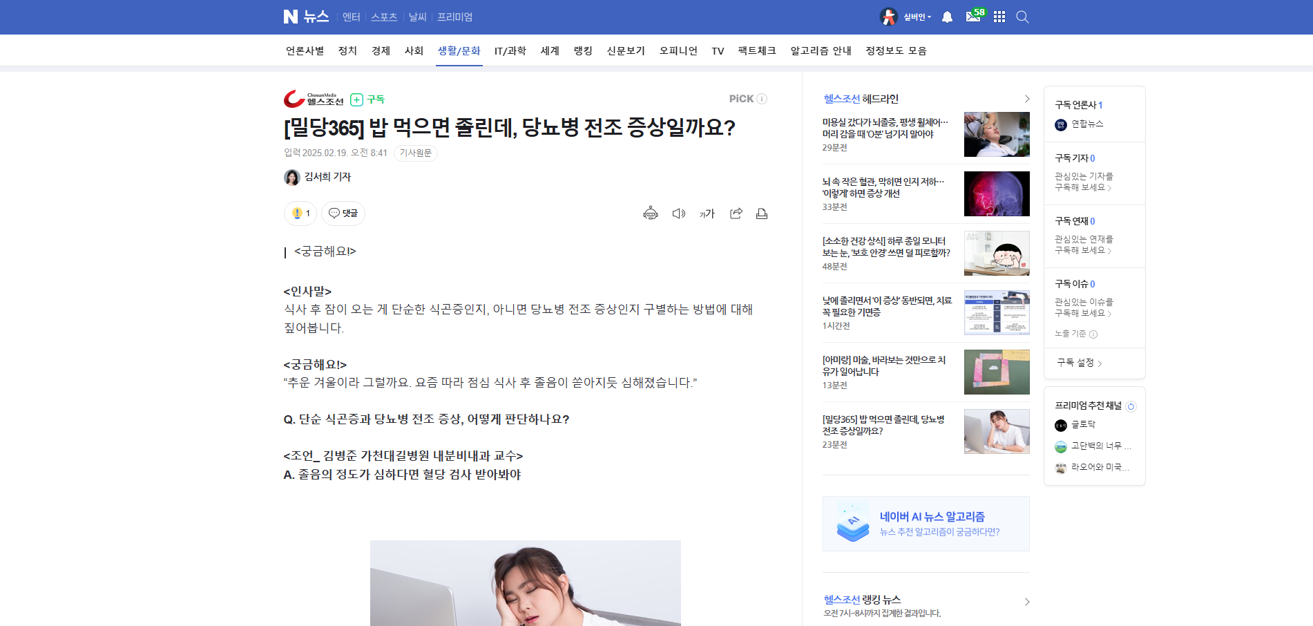 “추운 겨울이라 그럴까요. 요즘 따라 점심 식사 후 졸음이 쏟아지듯 심해졌습니다.”