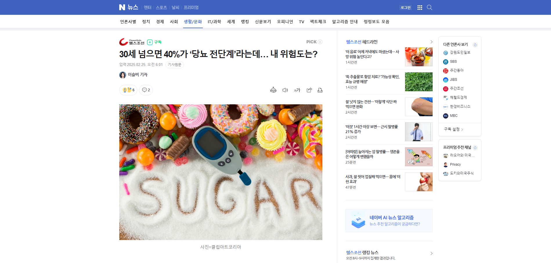 30세 넘으면 40%가 ‘당뇨 전단계’라는데… 내 위험도는?