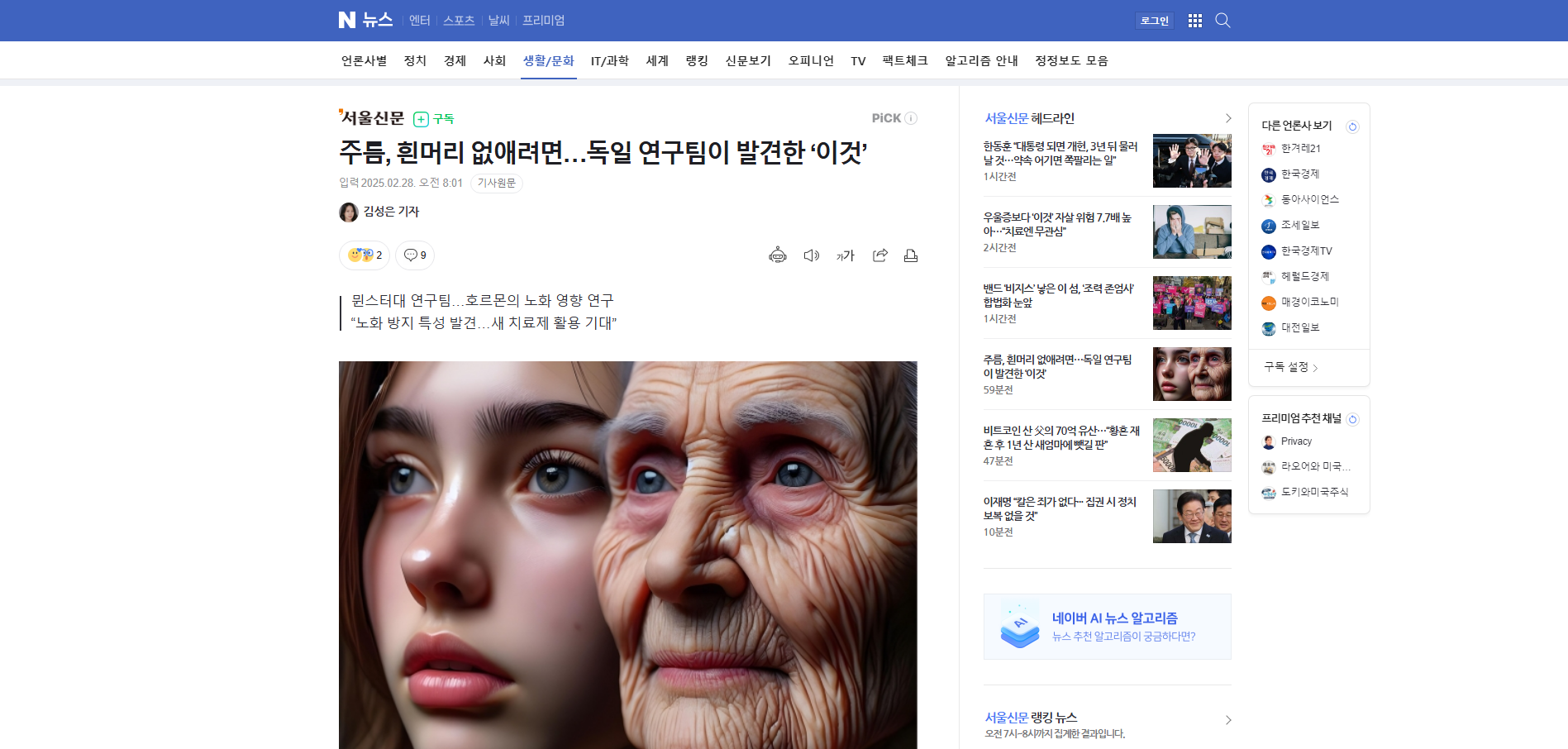 주름, 흰머리 없애려면…독일 연구팀이 발견한 ‘이것’