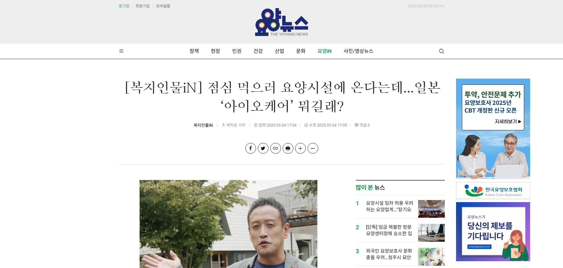 [복지인물iN] 점심 먹으러 요양시설에 온다는데...일본 ‘아이오케어’ 뭐길래?
