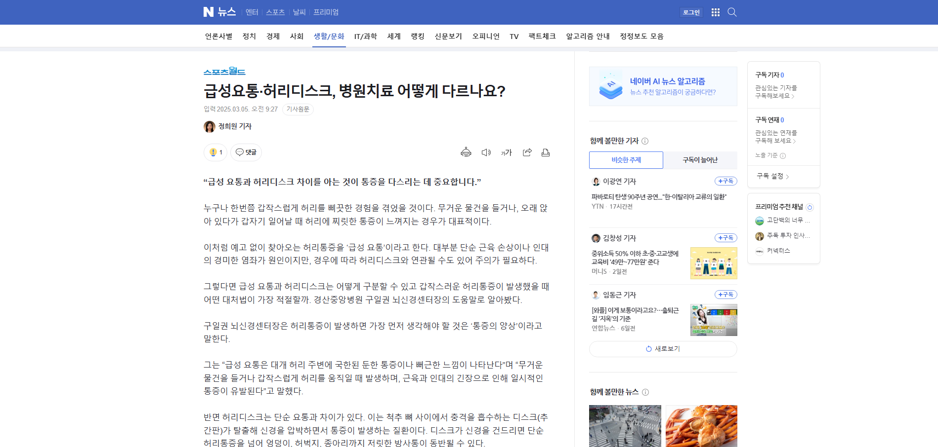“급성 요통과 허리디스크 차이를 아는 것이 통증을 다스리는 데 중요합니다.”