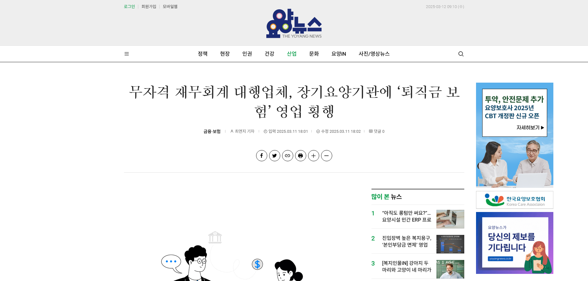무자격 재무회계 대행업체, 장기요양기관에 ‘퇴직금 보험’ 영업 횡행