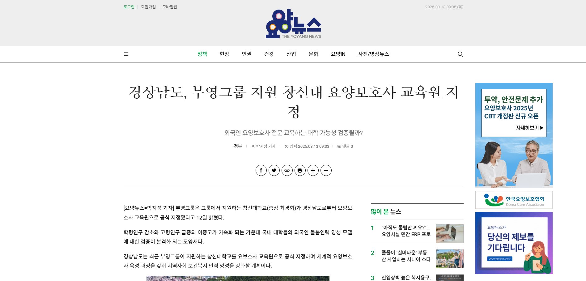 경상남도는 최근 부영그룹이 지원하는 창신대학교를 요보호사 교육원으로 공식 지정하며 체계적 요양보호사 육성 과정을 갖춰 지역사회 보건복지 인력 양성을 강화할 계획이다.