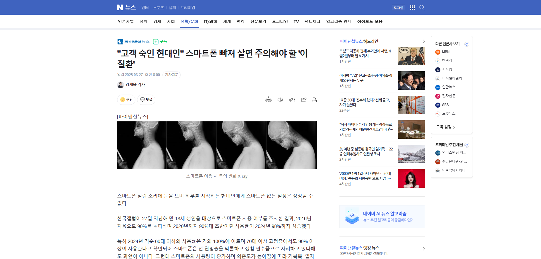 "고객 숙인 현대인" 스마트폰 뺘져 살면 주의해야 할 '이 질환'