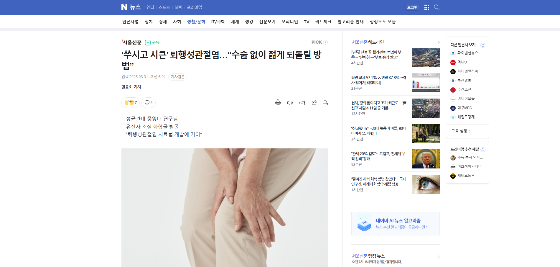 ‘쑤시고 시큰’ 퇴행성관절염…“수술 없이 젊게 되돌릴 방법”