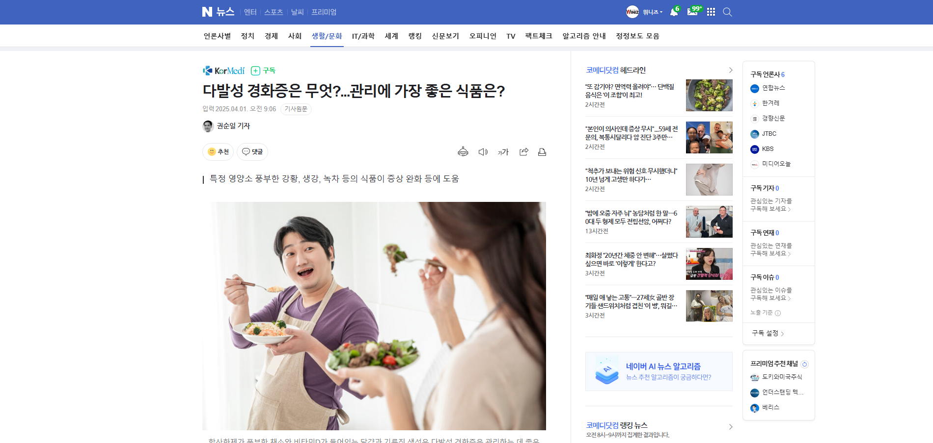 ![항산화제가 풍부한 채소와 비타민D가 들어있는 달걀과 기름진 생선은 다발성 경화증을 관리하는 데 좋은 식품으로 꼽힌다. [사진=클립아트코리아]](https://imgnews.pstatic.net/image/296/2025/04/01/0000088167_001_20250401090611950.jpg?type=w860)