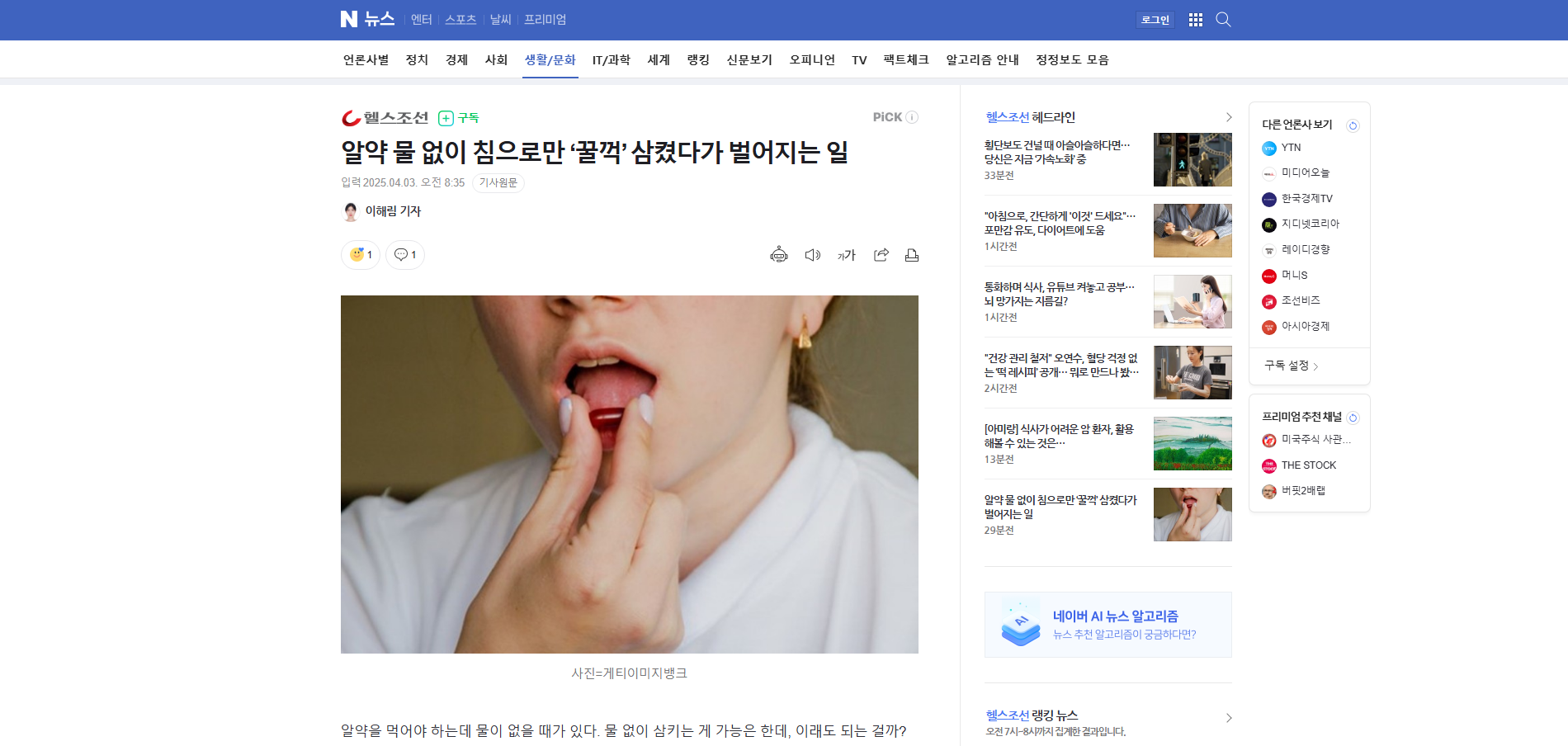 알약 물 없이 침으로만 ‘꿀꺽’ 삼켰다가 벌어지는 일
