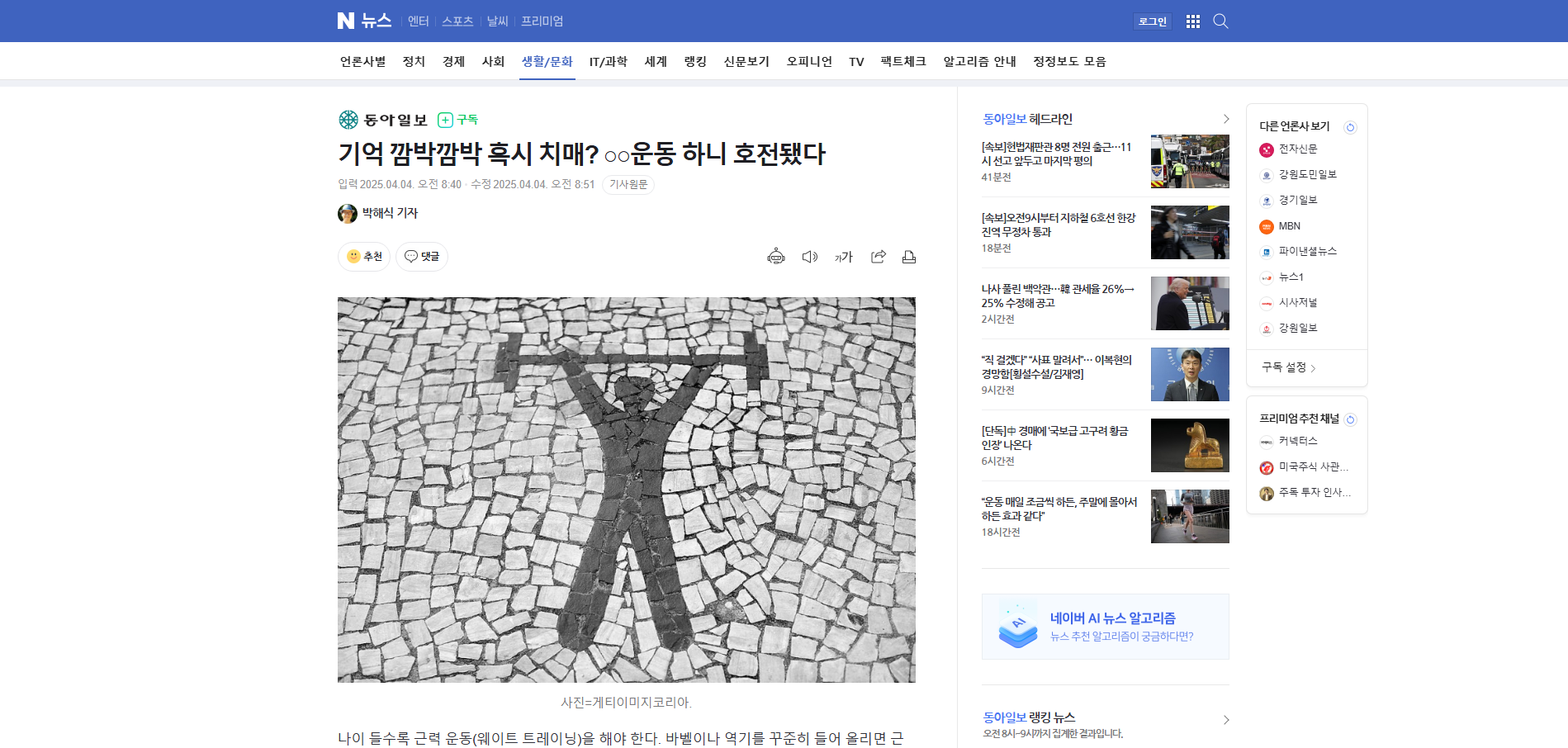 - 이전글"암 생존자, 영양·신체활동 지침 지키면 사망 위험 24% 감소" 25.04.07