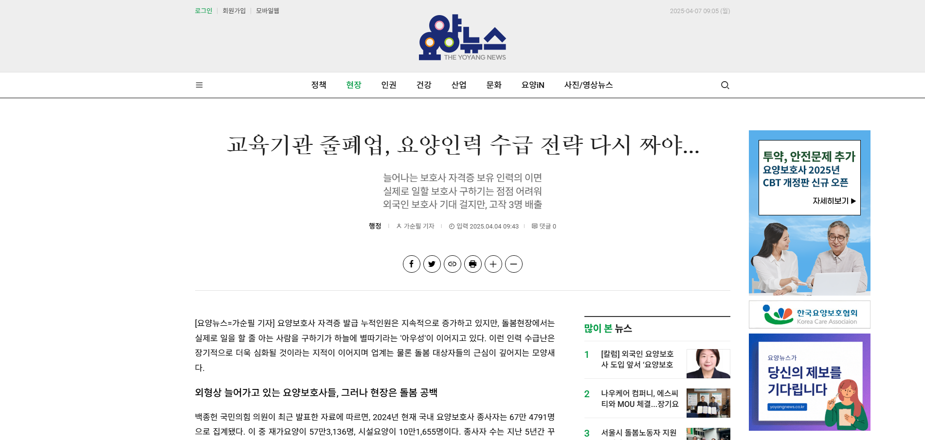 교육기관 줄폐업, 요양인력 수급 전략 다시 짜야...