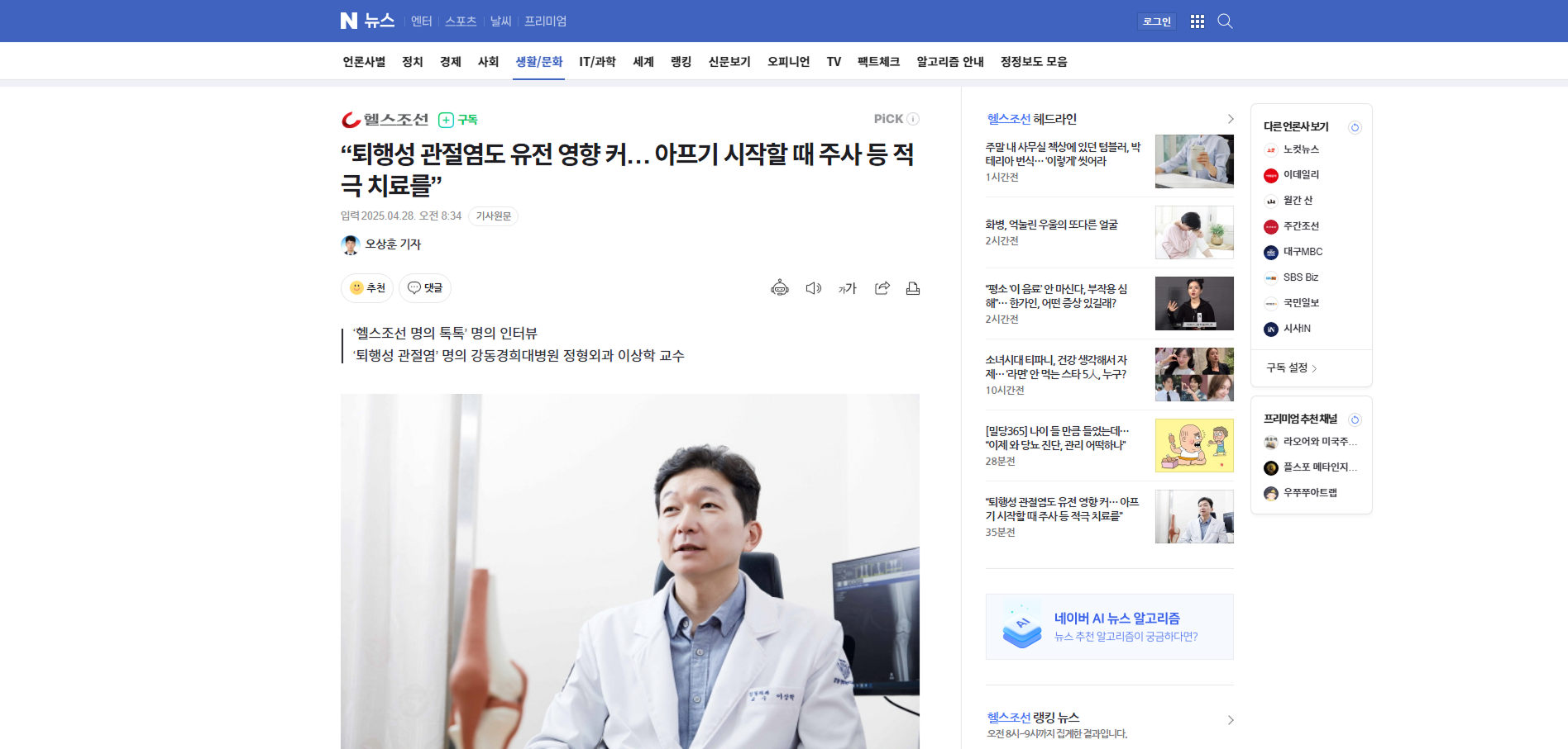 “퇴행성 관절염도 유전 영향 커… 아프기 시작할 때 주사 등 적극 치료를”