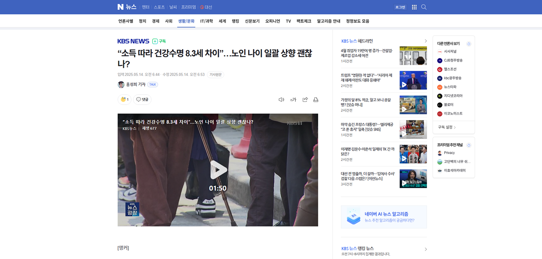 최근 노인 기준 나이를 65세에서 70세로 올리자는 제안이 나왔는데, 소득에 따른 건강 격차를 감안해야 한다는 의견이 제기되고 있습니다.