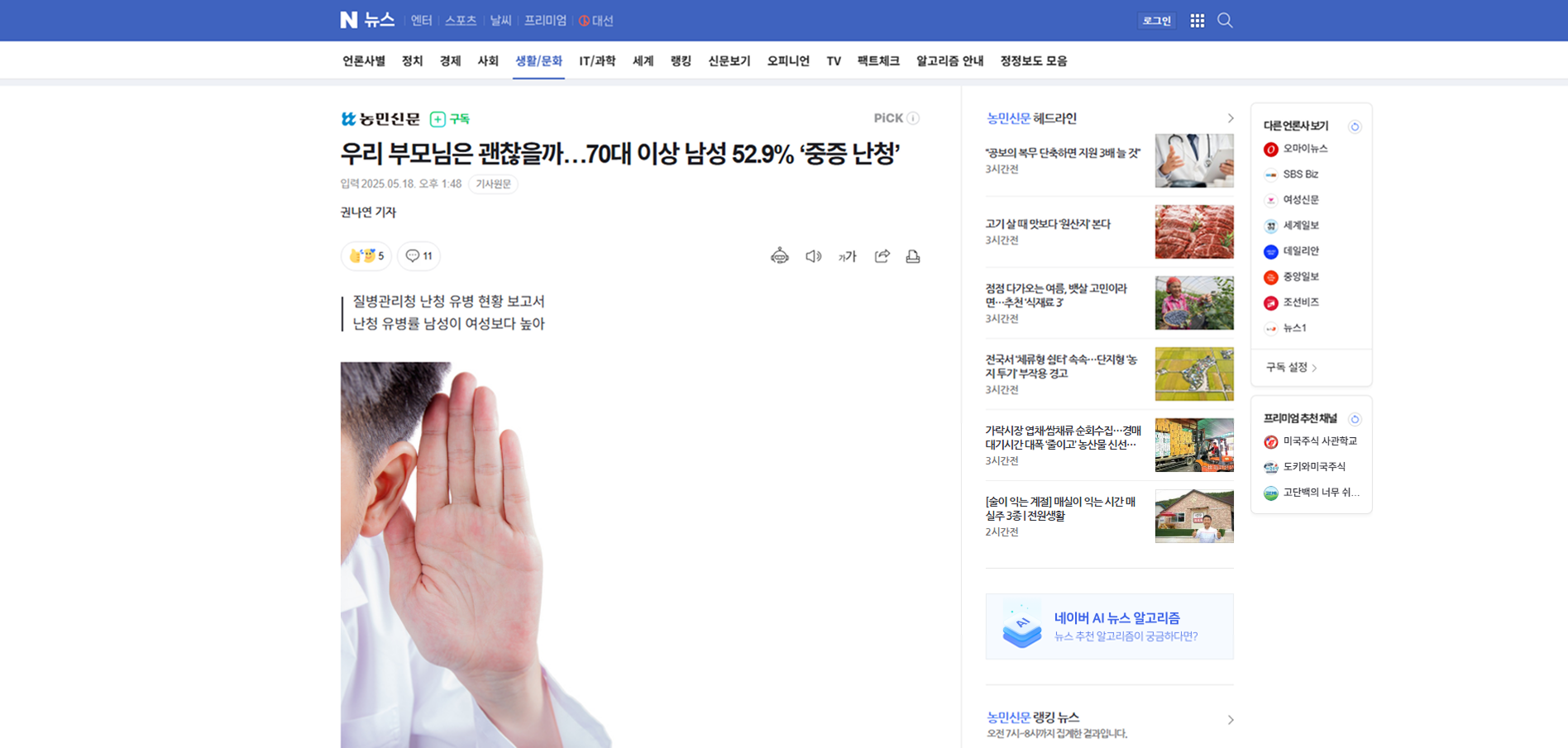 우리 부모님은 괜찮을까…70대 이상 남성 52.9% ‘중증 난청’