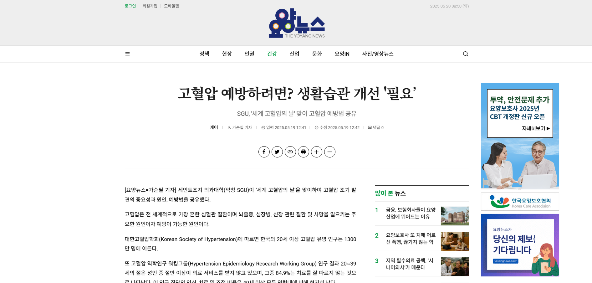 - 이전글단순 코골이 아닐수도?…고혈압·부정맥 위험 높이는 ‘이 병’ 25.05.20