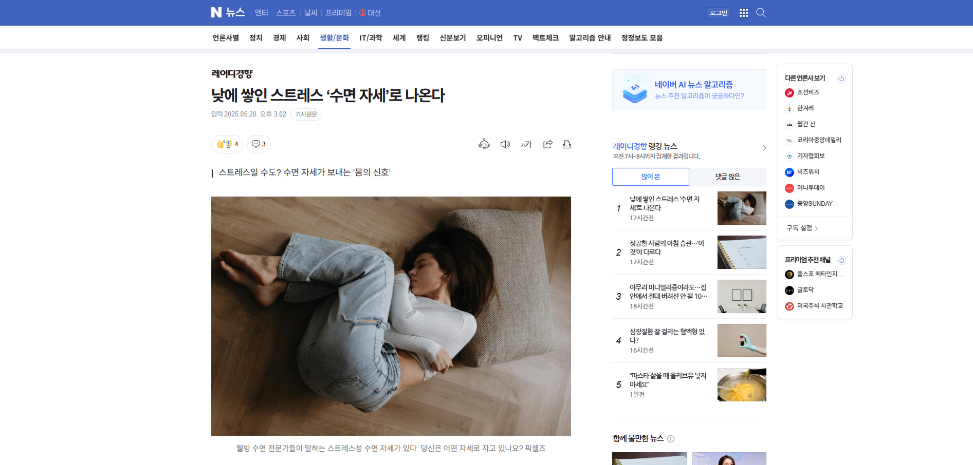 낮에 쌓인 스트레스 ‘수면 자세’로 나온다