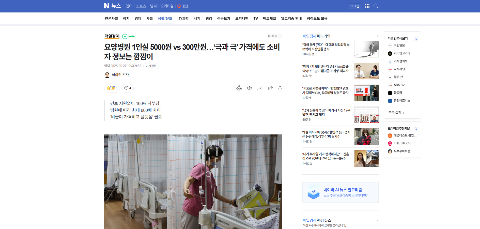 요양병원 1인실 5000원 vs 300만원…‘극과 극’ 가격에도 소비자 정보는 깜깜이