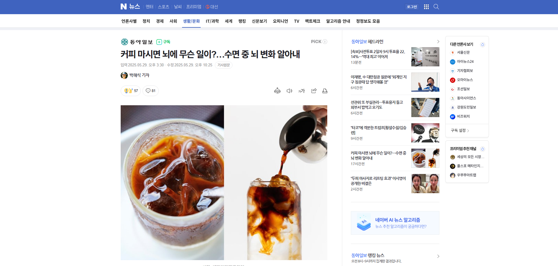 커피 마시면 뇌에 무슨 일이?…수면 중 뇌 변화 알아내