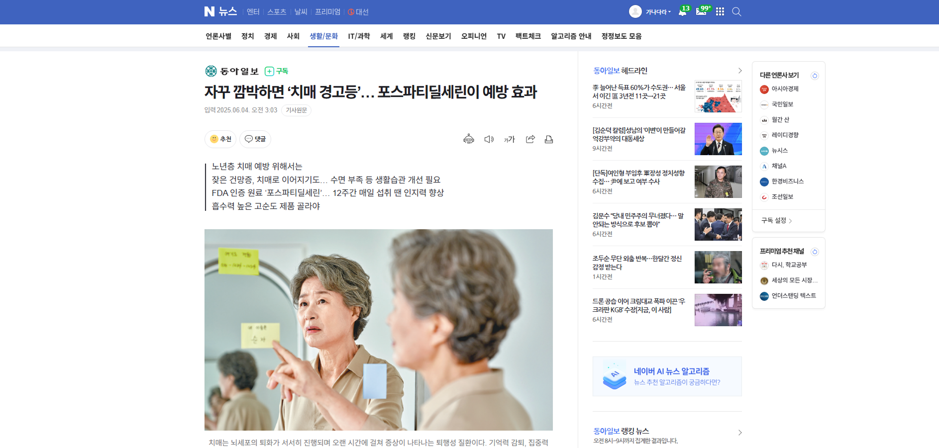 자꾸 깜박하면 ‘치매 경고등’… 포스파티딜세린이 예방 효과