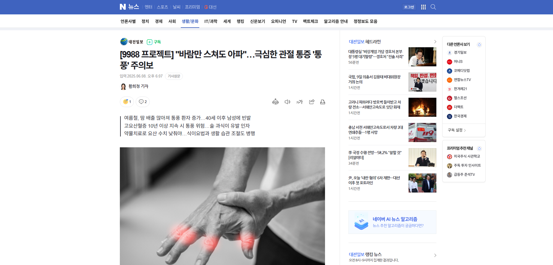 [9988 프로젝트] "바람만 스쳐도 아파"…극심한 관절 통증 '통풍' 주의보