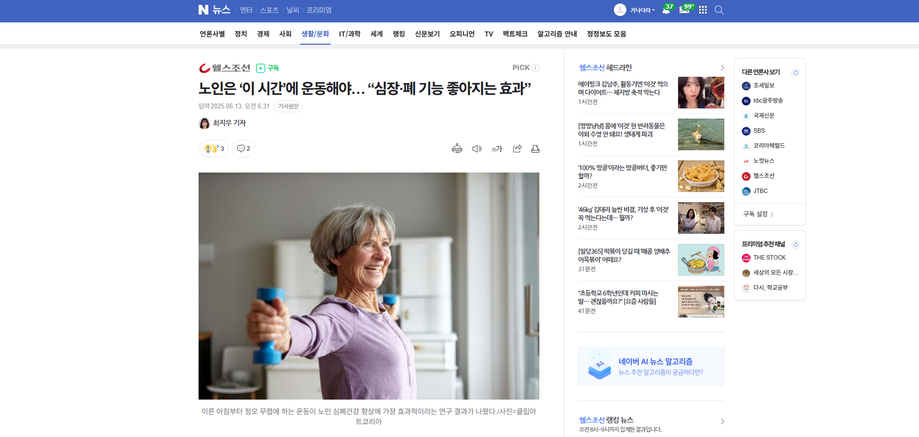 노인은 ‘이 시간’에 운동해야… “심장·폐 기능 좋아지는 효과”