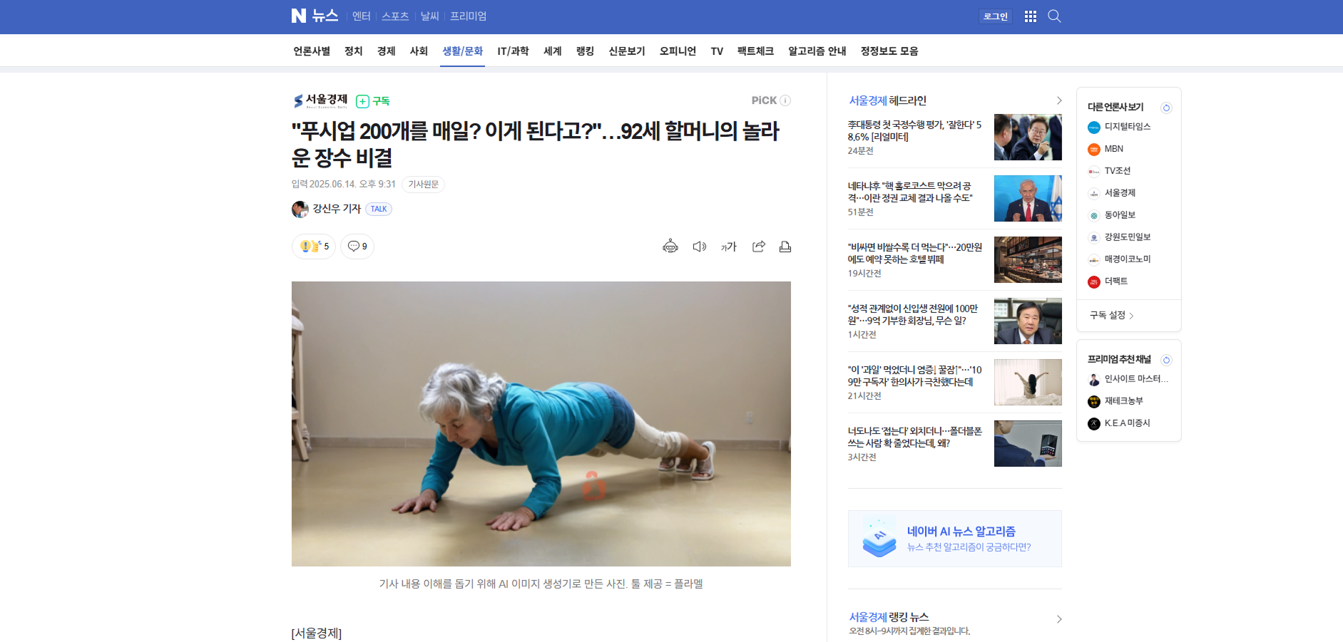 보도를 접한 누리꾼들은 "믿어지지 않는다, 젊은 사람도 팔 굽혀 펴기 10개도 못 하는데", "92세인데 말도 안 된다, 29세인 나도 그렇게 못한다", "군인보다 체력이 더 좋을 것 같다" 등의 반응을 보이며 놀라워했다.