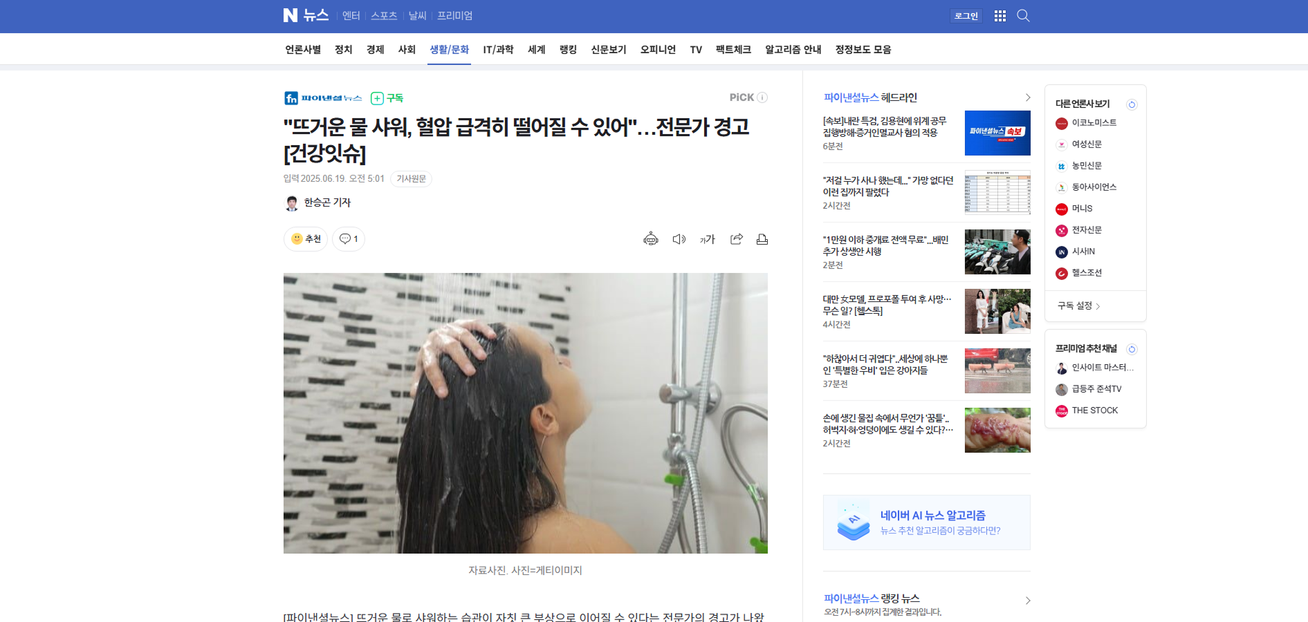 "뜨거운 물 샤워, 혈압 급격히 떨어질 수 있어"…전문가 경고 [건강잇슈]