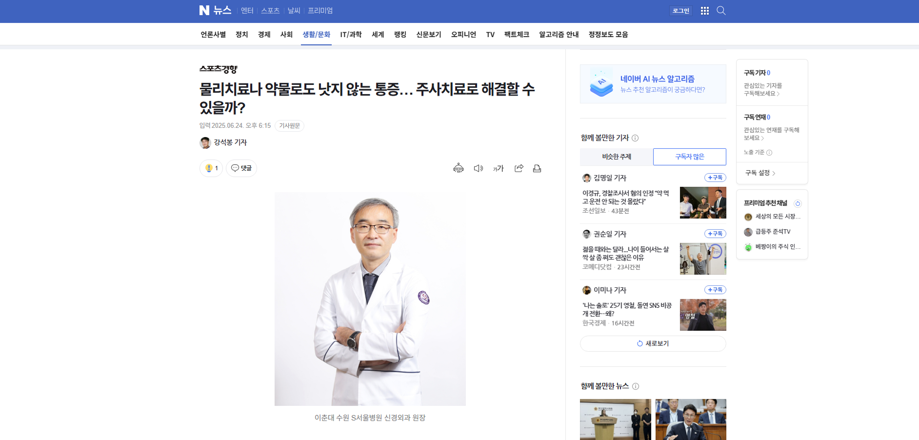 물리치료나 약물로도 낫지 않는 통증… 주사치료로 해결할 수 있을까?