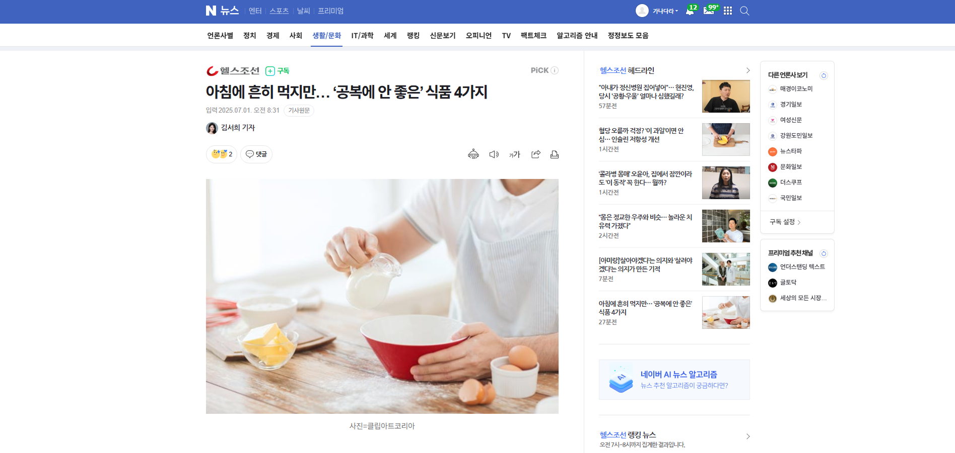 아침에 흔히 먹지만… ‘공복에 안 좋은’ 식품 4가지