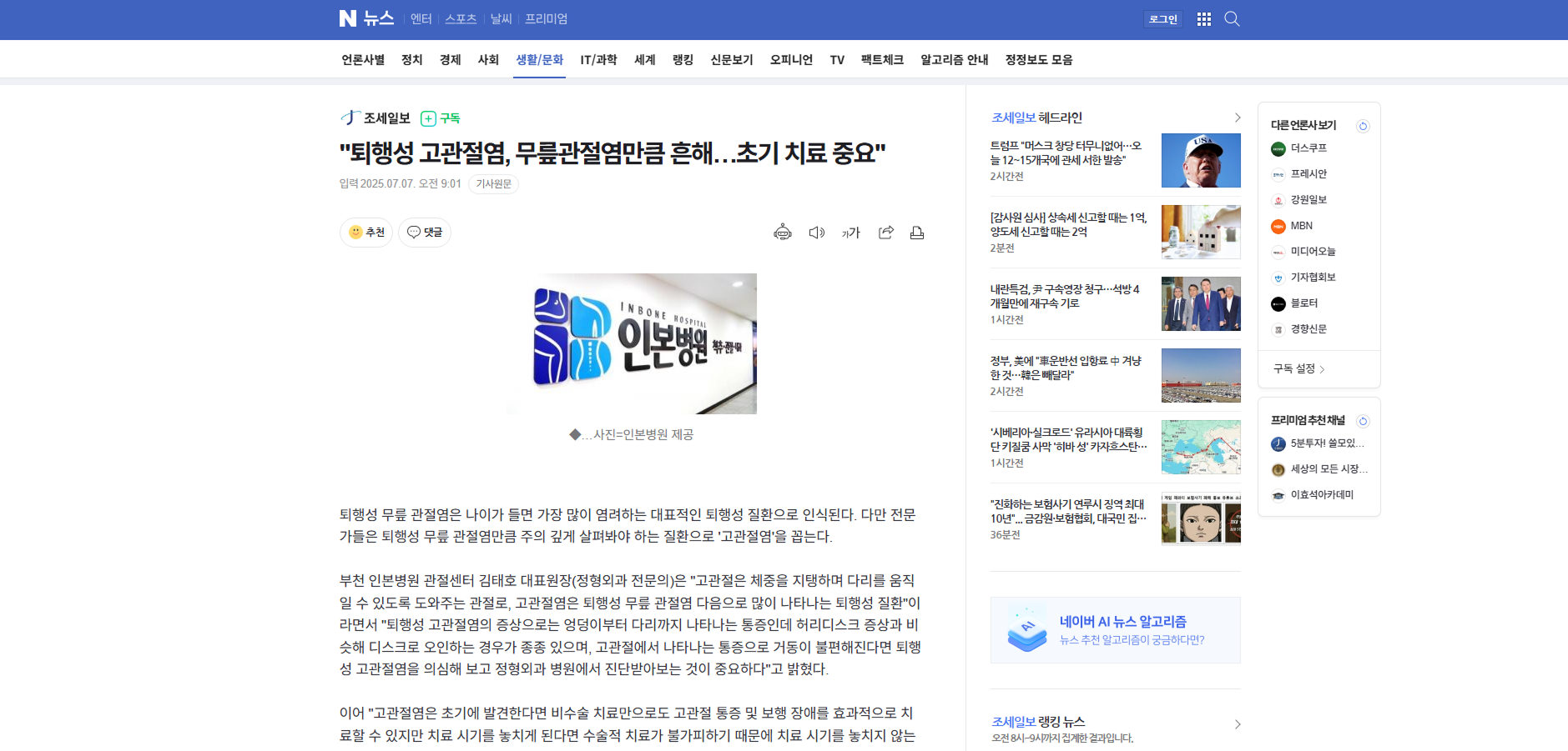 - 이전글류마티스 관절염, 조기 진단·전문적 치료 중요 25.07.07