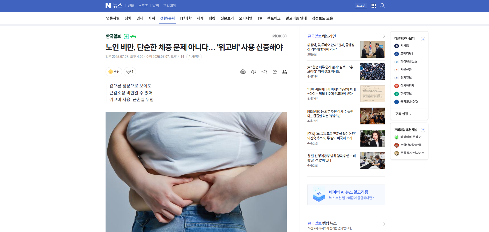 노인 비만, 단순한 체중 문제 아니다… '위고비' 사용 신중해야