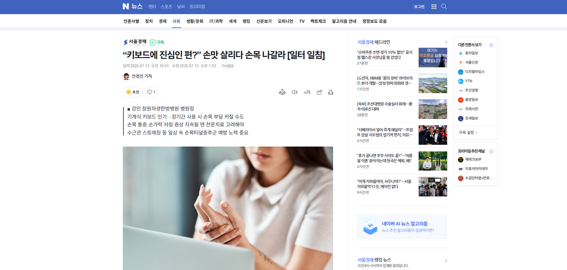 “키보드에 진심인 편?” 손맛 살리다 손목 나갈라 [일터 일침]