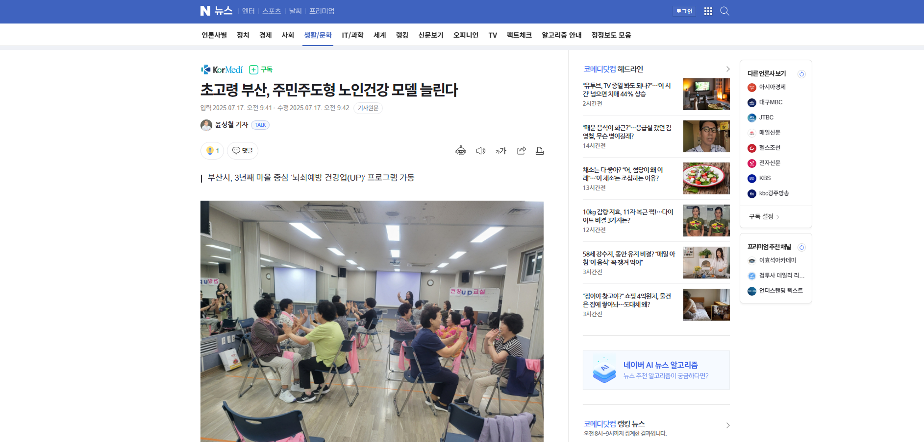 ![부산 전역 61곳 '하하(AHAH) 마을건강센터'에서 주민들은 다양한 건강업(UP) 프로그램을 이용할 수 있다. [사진=부산시]](https://imgnews.pstatic.net/image/296/2025/07/17/0000091349_001_20250717094212920.jpg?type=w860)