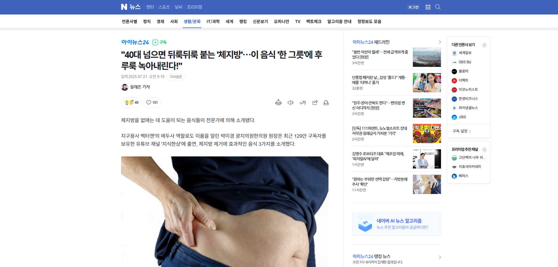 ![체지방을 없애는 데 도움이 되는 음식들이 전문가에 의해 알려졌다. 사진은 본 기사 내용과 무관. [사진=픽사베이]](https://imgnews.pstatic.net/image/031/2025/07/21/0000950214_001_20250721091906572.jpg?type=w860)