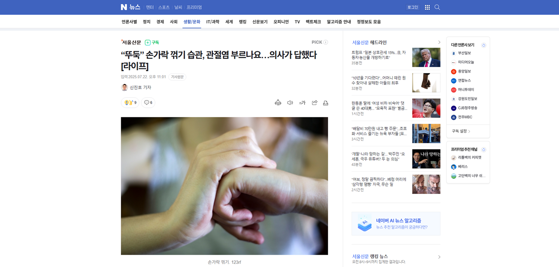 “뚜둑” 손가락 꺾기 습관, 관절염 부르나요…의사가 답했다 [라이프]