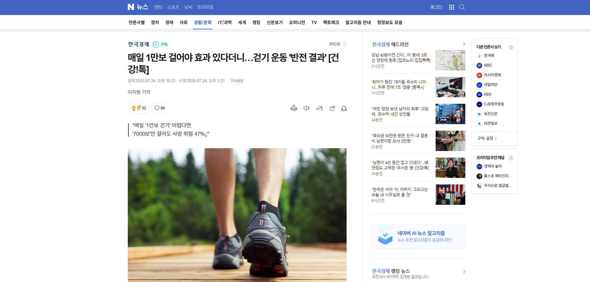 하루에 7000보만 꾸준히 걸어도 조기 사망 위험을 최대 47%까지 낮출 수 있다는 연구 결과가 나왔다. 그동안 '1만보 걷기'가 건강에 도움이 된다고 알려졌지만 7000보만 걸어도 충분히 효과를 볼 수 있다는 것이다.