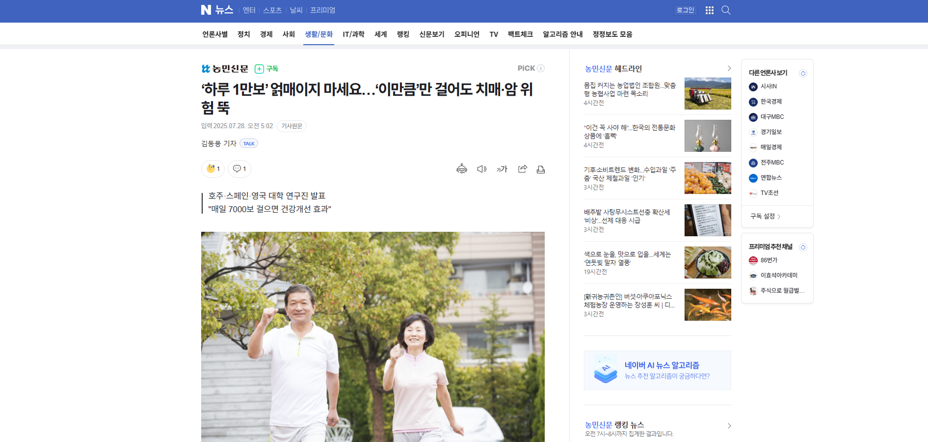‘하루 1만보’ 얽매이지 마세요…‘이만큼’만 걸어도 치매·암 위험 뚝
