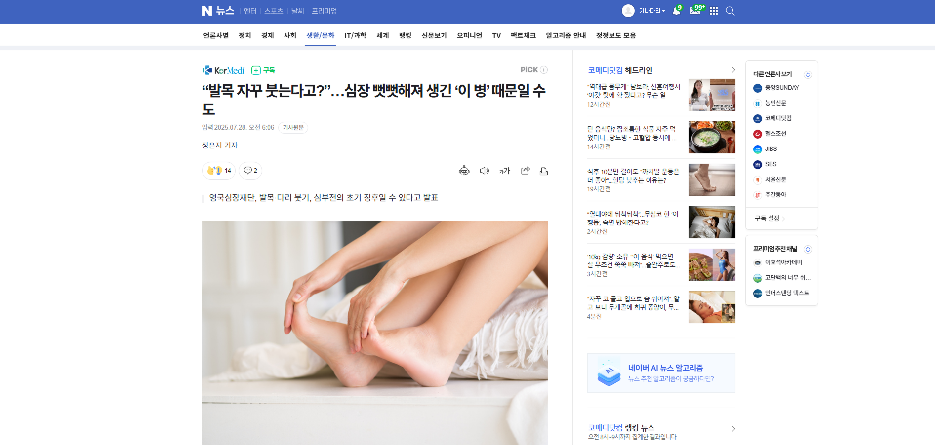 “발목 자꾸 붓는다고?”…심장 뻣뻣해져 생긴 ‘이 병’ 때문일 수도