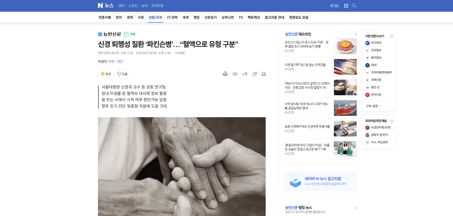 신경 퇴행성 질환 ‘파킨슨병’…“혈액으로 유형 구분”