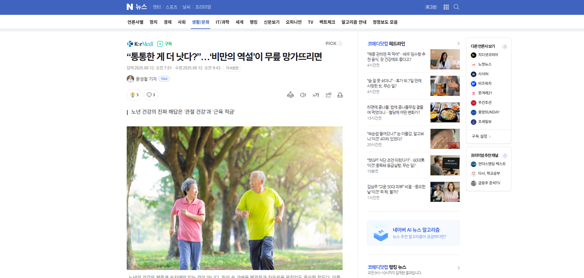 결국 나이 들수록 혈관과 관절, 내과와 외과적 지표를 균형 있게 챙기는 맞춤형 관리가 필요하다. 건강의 저울은 체중계 숫자만이 아니라, 일상 속 가벼운 발걸음과 자유로운 움직임에도 숨어있기 때문. 그렇다면, 당장 지금부터라도 노년기 건강 위한 '근육 적금', '관절 적금' 시작해보는 것은 어떨까?