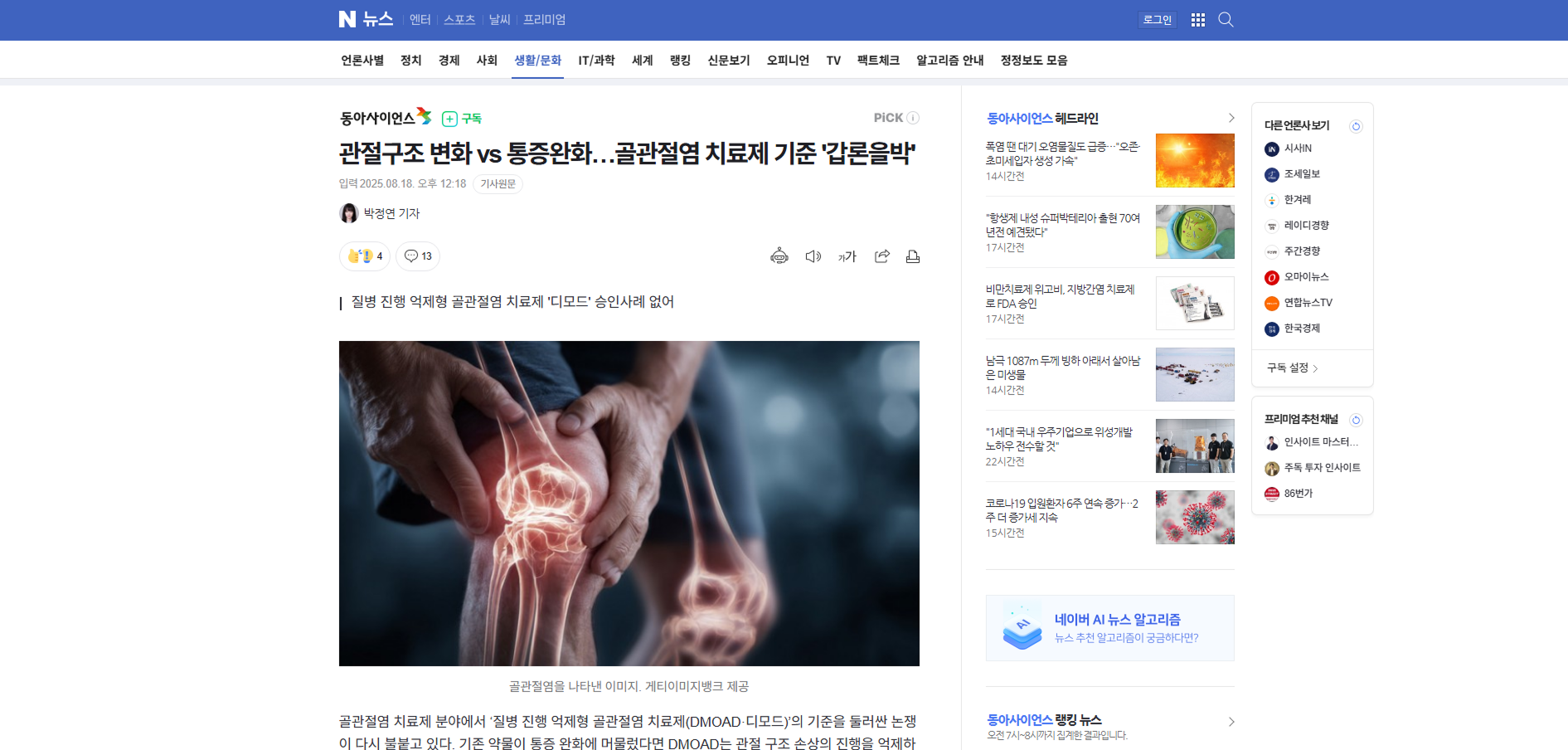 관절구조 변화 vs 통증완화…골관절염 치료제 기준 '갑론을박'