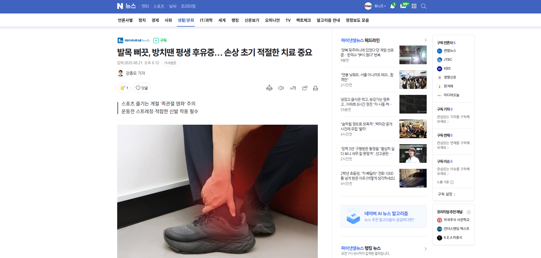 건강보험심사평가원 의료빅데이터에 따르면 족관절 염좌로 병원을 찾는 환자는 2022년부터 2024년까지 2.44% 증가했으며, 매달 약 20만명이 치료를 받고 있을 만큼 환자 수가 꾸준히 늘어나고 있다.
