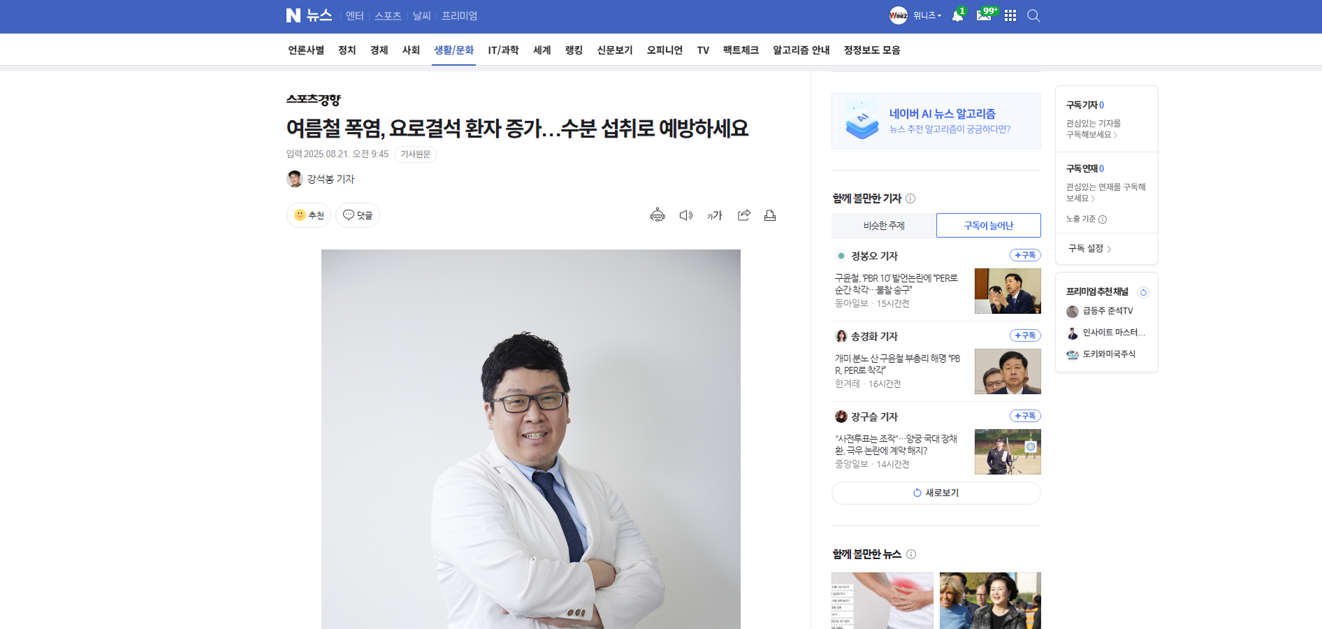 - 다음글온열질환 환자 3763명·남성이 다수 “예방위해 규칙적으로 물 자주 마셔야” 25.08.22
