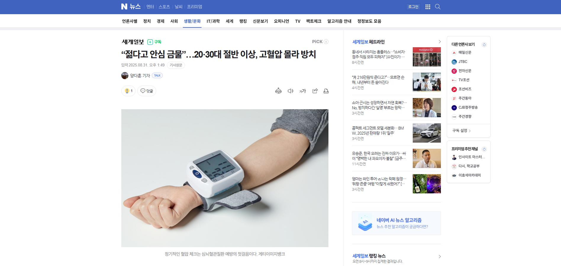 “젊다고 안심 금물”…20·30대 절반 이상, 고혈압 몰라 방치