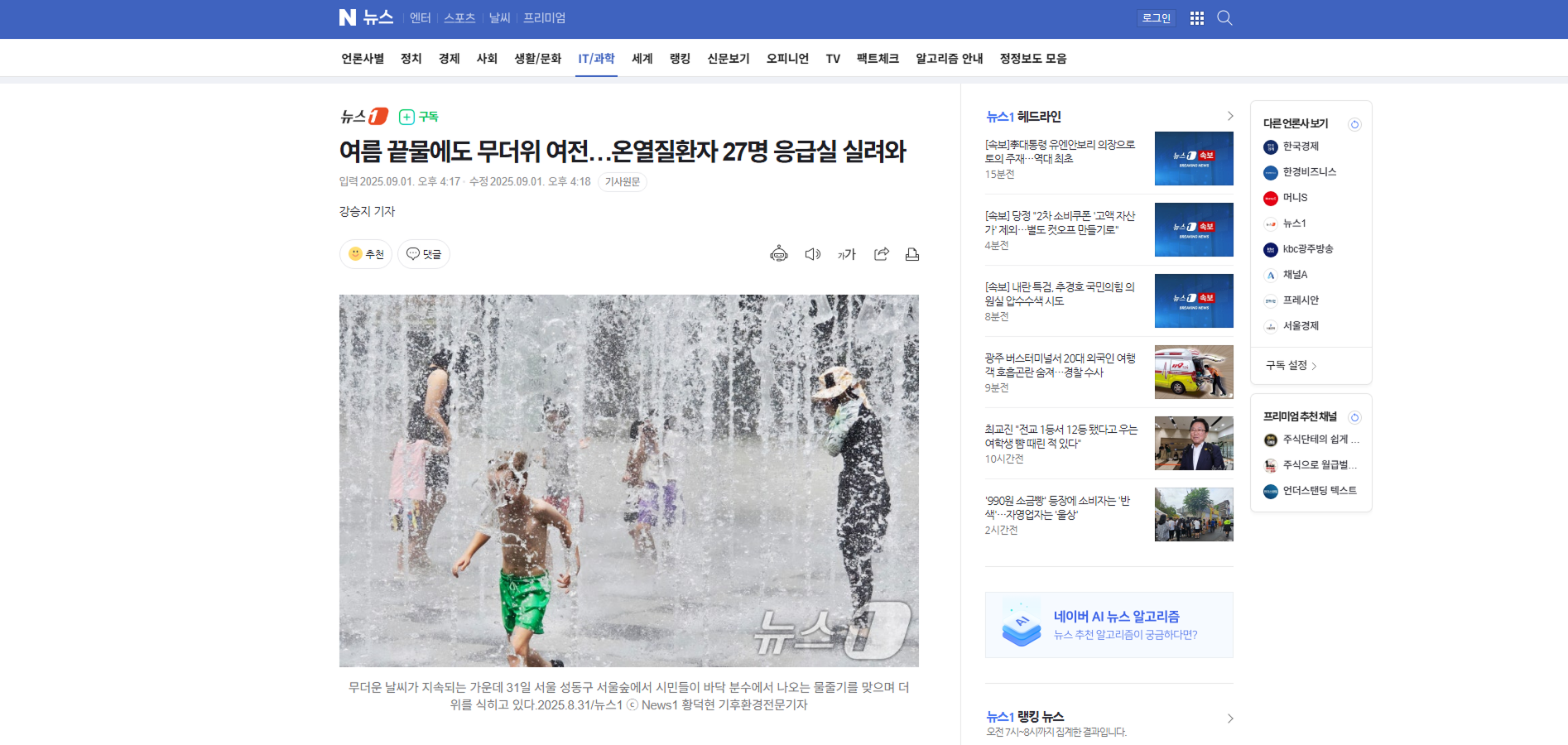 여름 끝물에도 무더위 여전…온열질환자 27명 응급실 실려와