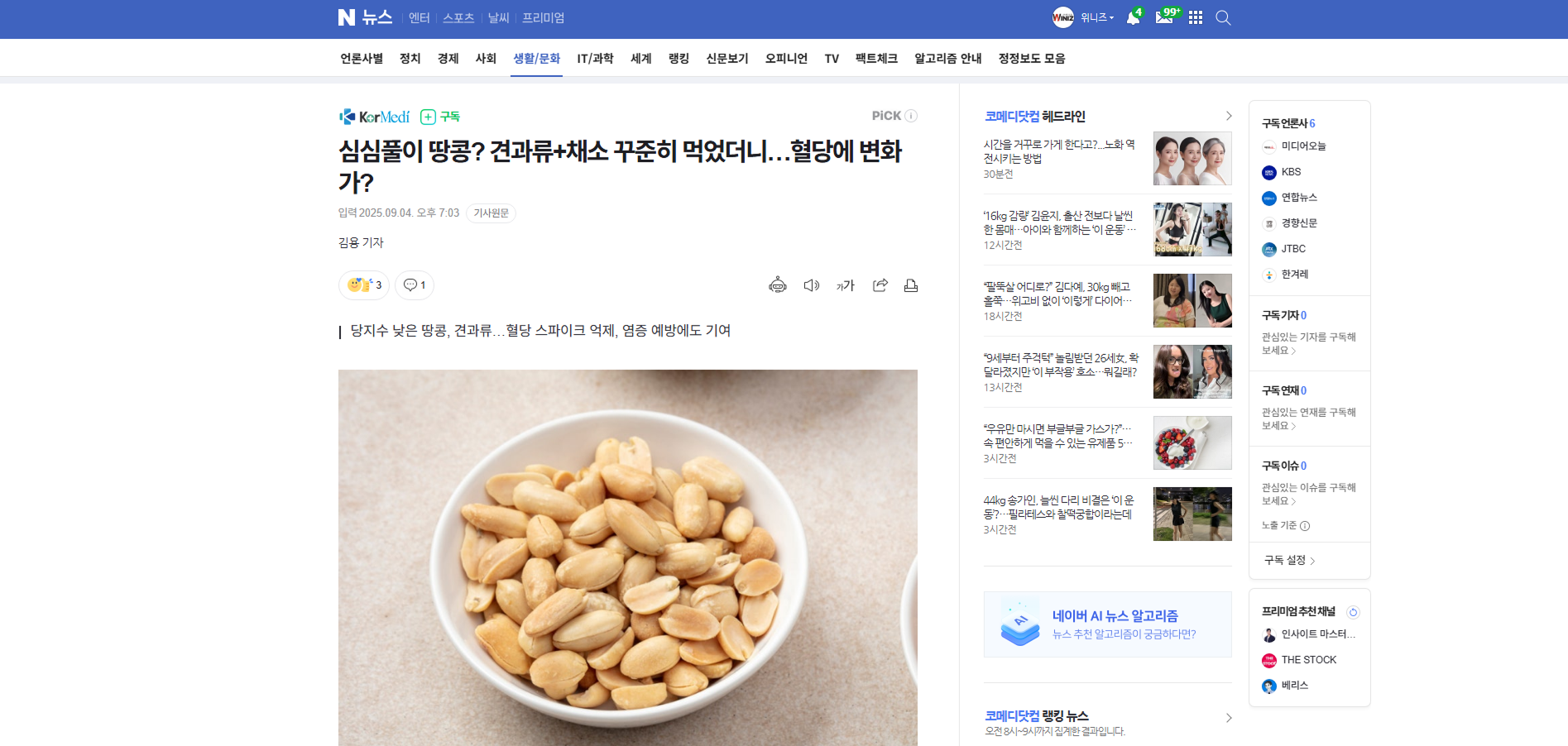심심풀이 땅콩? 견과류+채소 꾸준히 먹었더니…혈당에 변화가?