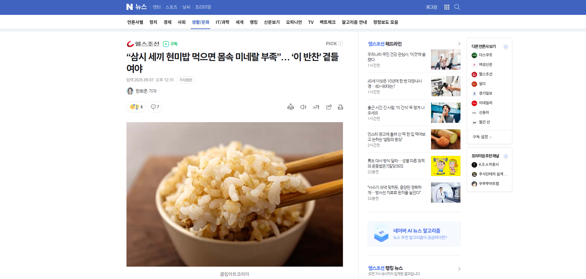 “삼시 세끼 현미밥 먹으면 몸속 미네랄 부족”… ‘이 반찬’ 곁들여야