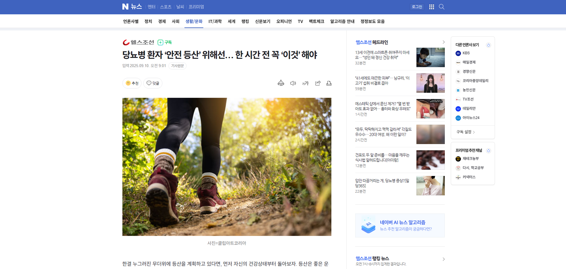 당뇨병 환자 ‘안전 등산’ 위해선… 한 시간 전 꼭 ‘이것’ 해야