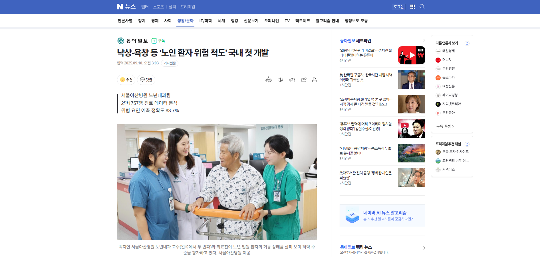낙상-욕창 등 ‘노인 환자 위험 척도’ 국내 첫 개발