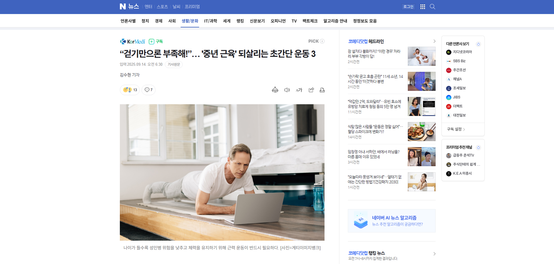 “걷기만으론 부족해!”… '중년 근육' 되살리는 초간단 운동 3
