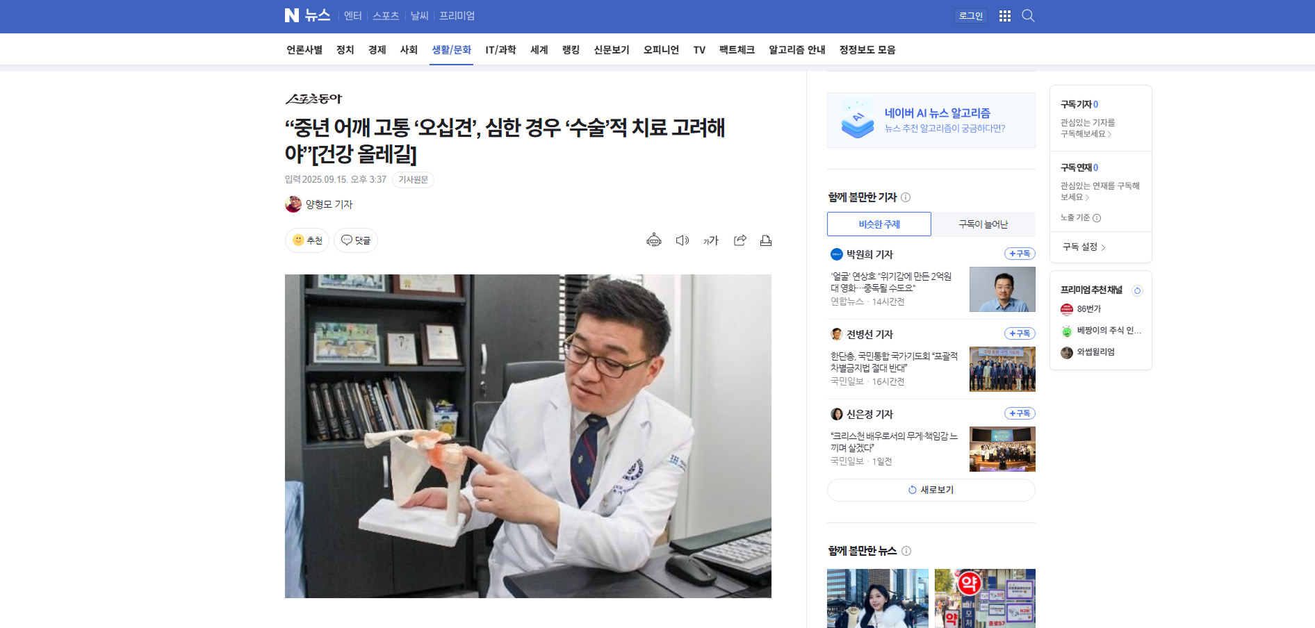“중년 어깨 고통 ‘오십견’, 심한 경우 ‘수술’적 치료 고려해야”[건강 올레길]